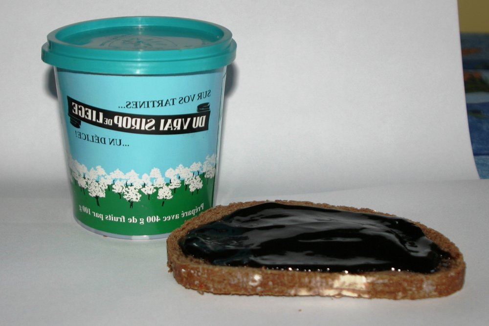 Ein traditioneller, dunkler Fruchtaufstrich aus der Region Lüttich, hergestellt durch langes Einkochen von Äpfeln, Birnen und Datteln. Der Sirup schmeckt hervorragend auf Brot, zu Käse oder als Zutat in dunklen Saucen.