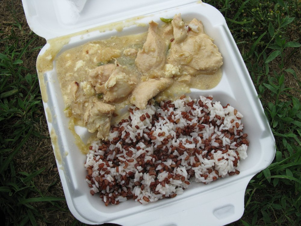 Bhutanese hemadatsi – Foto: Bhutanese_hemadatsi_and_rice.JPG: ShashiBellamkonda derivative work: Thejinan (talk) (CC BY 2.0)