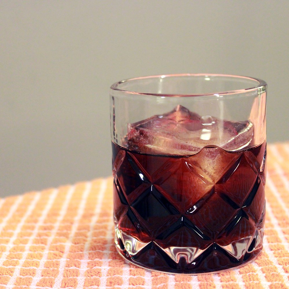 Ein Old-Fashioned-Glas mit Eiswürfeln füllen und kalt stellen.