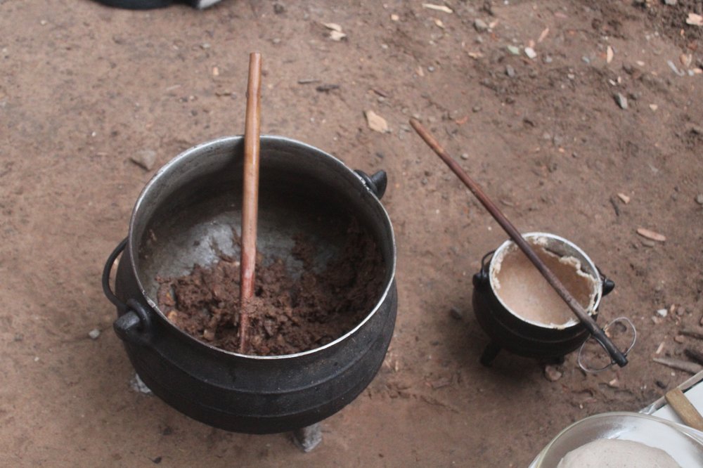 Seswaa ist ein kulturelles Symbol in Botswana und wird traditionell von Männern zubereitet – oft in großen Mengen für Gemeinschaftsfeiern wie Hochzeiten oder Trauerfeiern. Das Gericht wird in einem dreibeinigen Eisenkessel über offenem Feuer gekocht, was ihm eine rauchige Tiefe verleiht. Die lange Garzeit und das Zerstampfen sorgen für eine einzigartige, zarte Konsistenz, die den Geschmack des Fleisches intensiviert.