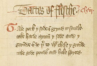 Wikipedia-Bild - Tartes_of_flessh_recipe.jpg - Foto: The chief Master Cooks of King Richard II - PUBLIC DOMAIN