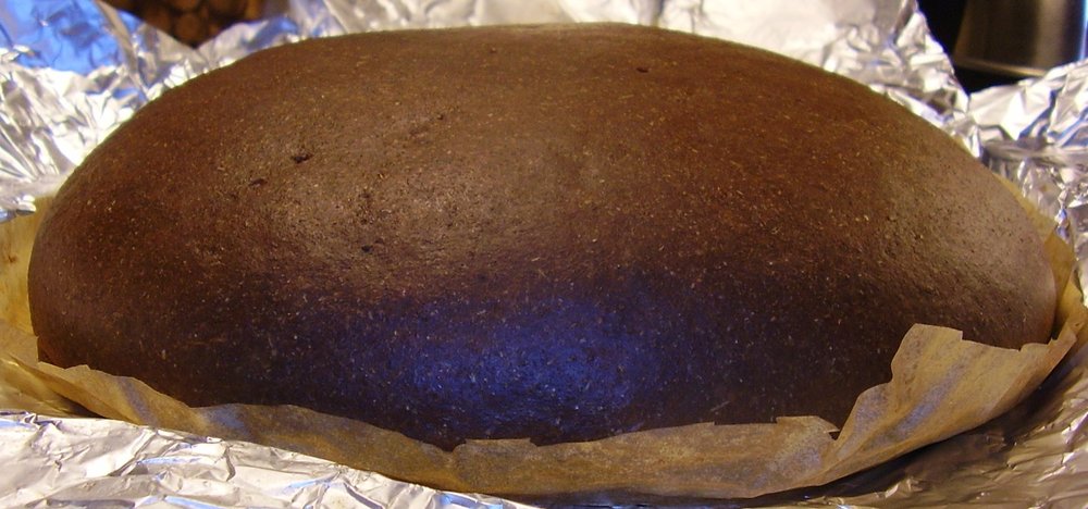 Nach dem Backen in der Folie abkühlen lassen, damit die Kruste weich wird. In dicke Scheiben schneiden und traditionell mit kalter Butter servieren.