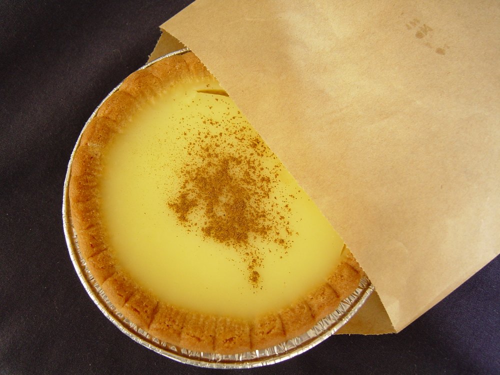 Custard tart emerging from wrapper – Foto: Shanti, shanti (CC BY 2.0)