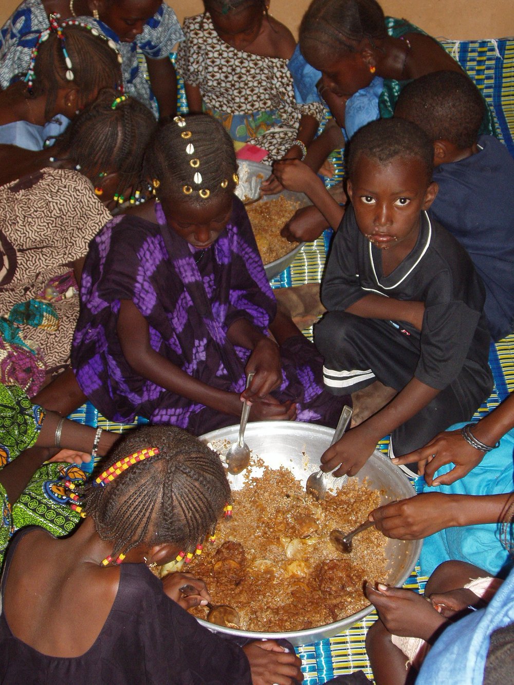 Das Nationalgericht aus Burkina Faso: Ein aromatischer One-Pot-Reis, der zusammen mit Hähnchen und viel Gemüse in einer würzigen Tomatensauce gegart wird. 'Riz Gras' bedeutet wörtlich 'Fetter Reis' und ist bekannt für seinen reichen Geschmack.