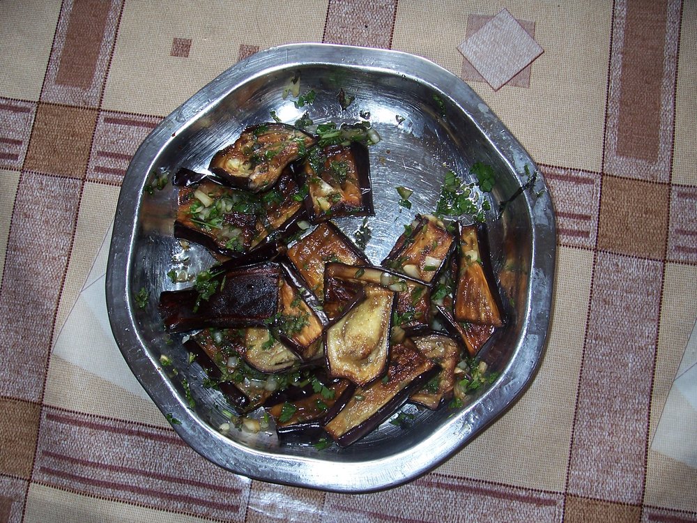 Diese traditionelle georgische Vorspeise verbindet knusprig gebratene Auberginenscheiben mit einer würzigen Walnuss-Füllung aus Knoblauch, Koriander und Gewürzen. Zum Schluss garniert mit Granatapfelkernen für einen fruchtigen Kontrast – perfekt als kühle, aromatische Beilage oder Vorspeise.