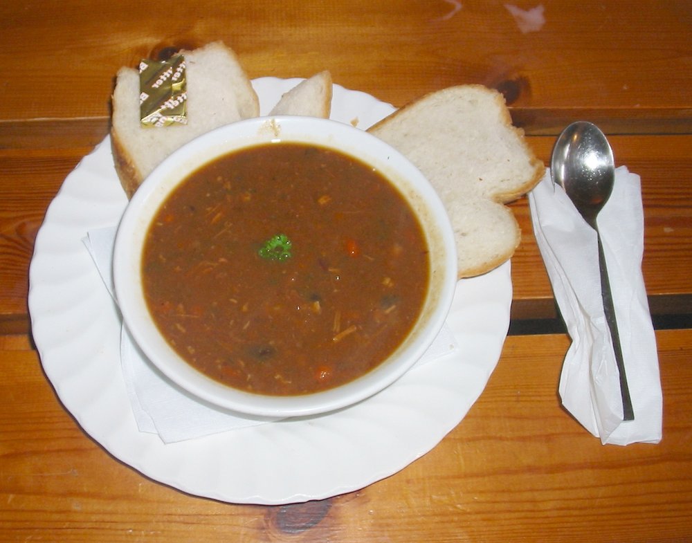 Ein deftiger, sämiger Eintopf aus weißen Bohnen und Rauchfleisch, der in der Balkan-Küche als Grundnahrungsmittel gilt. Charakteristisch ist die rötliche Farbe durch viel Paprikapulver und die Bindung durch eine Mehlschwitze.