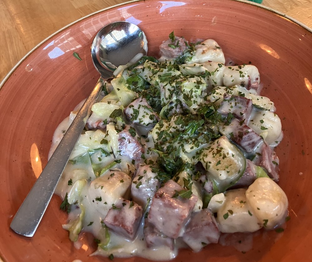 Boxty stammt aus den ländlichen Regionen Irlands, insbesondere aus den Countys Leitrim, Mayo und Cavan. Früher ein einfaches Arme-Leute-Essen, das aus übrig gebliebenen Kartoffeln zubereitet wurde, ist es heute ein beliebtes Symbol irischer Küche. Der Name leitet sich vom irischen 'bacstaí' ab und beschreibt die feine, fast cremige Textur – im Gegensatz zu grob gewürfelten Kartoffelgerichten.