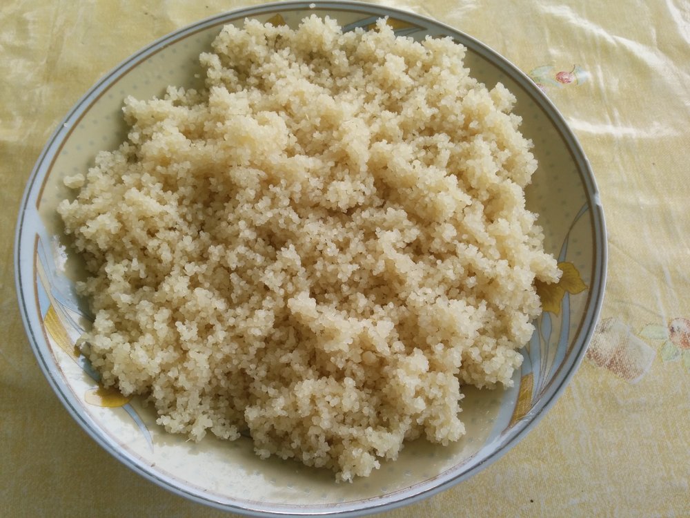 Das Nationalgericht der Elfenbeinküste aus fermentiertem Maniokgrieß. Es ist leicht säuerlich im Geschmack, glutenfrei und eine beliebte Alternative zu Weizen-Couscous oder Reis.