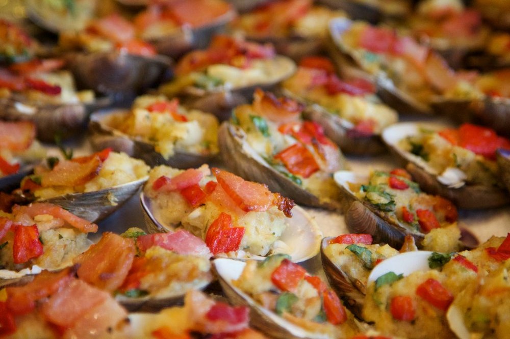 Ein legendärer amerikanischer Vorspeisen-Klassiker aus Rhode Island. Saftige Venusmuscheln werden in der Schale mit einer würzigen Mischung aus knusprigem Speck, grüner Paprika und Semmelbröseln goldbraun überbacken.