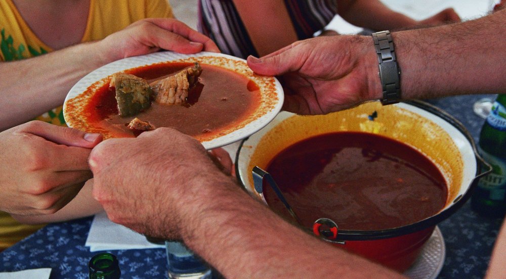 Eine feurige, rote Fischsuppe nach traditioneller ungarischer Art. Der kräftige Fond aus Kleinfischen und viel Paprika bildet die Basis für edle Filetstücke.