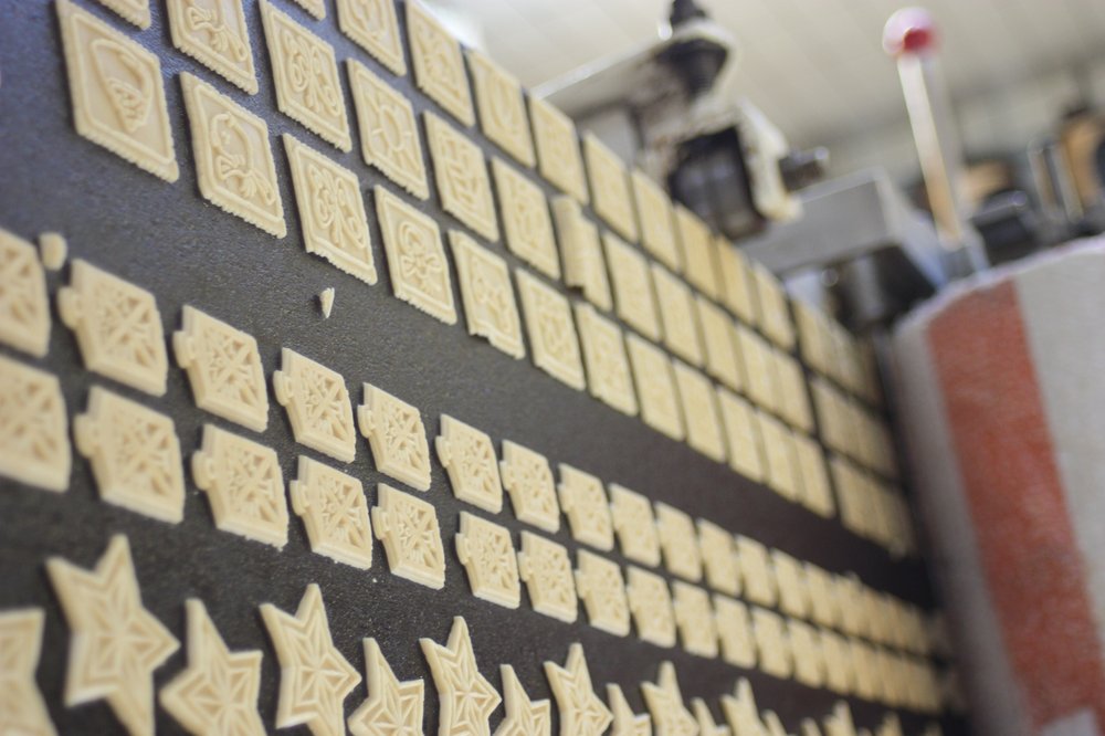 Die Tirggel auf der obersten Schiene für nur 1-2 Minuten backen (beflammen), bis das Motiv braun hervortritt, die Unterseite aber hell bleibt. Dabei ständig beobachten, da sie schnell verbrennen.