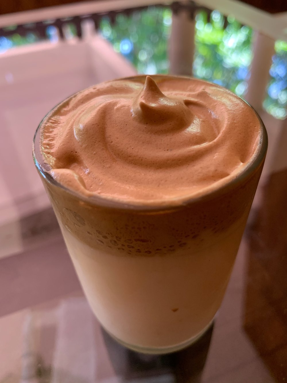 Ein trendiges Kaffeegetränk, das durch den viralen Erfolg in Südkorea weltbekannt wurde. Es besteht aus kalter oder warmer Milch, gekrönt von einer süßen, luftig aufgeschlagenen Kaffeeschaumhaube.