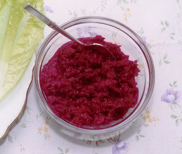 Eine traditionelle, würzige Paste aus frisch geriebenem Meerrettich und Roter Bete. Dieser scharfe Klassiker ist eine unverzichtbare Beilage zu gekochtem Fleisch oder Fisch in der osteuropäischen Küche.