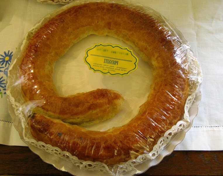 Der Presnitz ist eine Spezialität aus Triest mit österreichischen Wurzeln. Der Legende nach wurde er 1832 anlässlich eines Besuchs von Kaiserin Sisi als 'Preis der Prinzessin' erfunden, obwohl der Name wahrscheinlich vom slowenischen 'presnec' stammt. Pellegrino Artusi nannte ihn 'Süßspeise der Deutschen'.