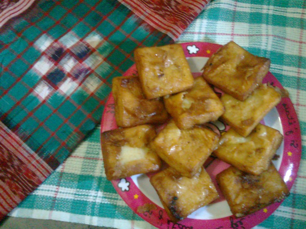 Ein traditionelles, frittiertes Dessert aus dem indischen Odisha, hergestellt aus Mungbohnen und Reismehl. Die süßen, goldbraunen Rauten sind außen knusprig und innen herrlich weich.