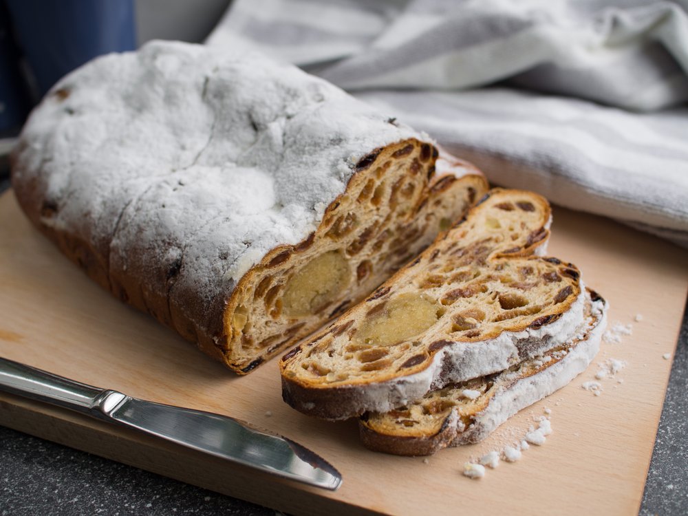 Dieser süße Hefekuchen aus Bremen ist reich an Rosinen, Mandeln und Zitrusaromen – ein echter Weihnachtsklassiker mit monatelanger Haltbarkeit. Im Gegensatz zum Dresdner Stollen wird er nicht mit Puderzucker bestäubt, sondern pur genossen – am besten zwei Wochen vor dem Verzehr gebacken.