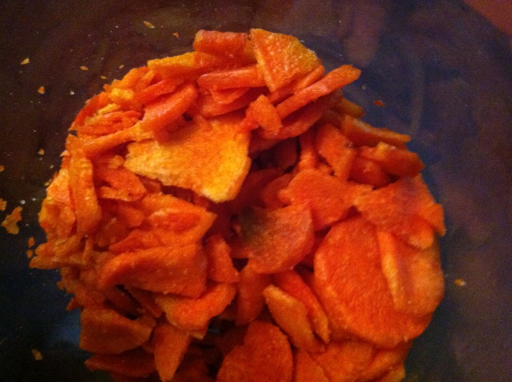 Carrot Chips werden oft als gesunde Alternative zu Kartoffelchips geschätzt und haben eine ähnliche Konsistenz. Wissenschaftler der University of Nebraska untersuchten sie sogar als Mittel zur Bekämpfung von Vitaminmangel bei Kindern in Entwicklungsländern. Während sie industriell oft frittiert werden, ist die gebackene Variante fettärmer.