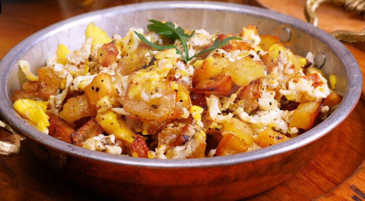 Ein rustikales und herzhaftes Gericht aus der Levante, das einfache Zutaten wie Kartoffeln, Eier und Ghee zu einem wahren Festmahl verbindet. Perfekt als kräftiges Frühstück, schnelles Mittagessen oder leichtes Abendbrot – traditionell serviert mit frischem Fladenbrot und süßem Tee.