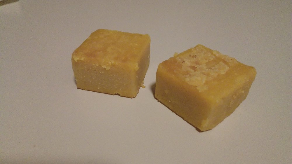 Den Kuchen vollständig in der Form auskühlen lassen, da er warm noch sehr weich ist. Anschließend in kleine Vierecke oder schmale Tortenstücke schneiden.