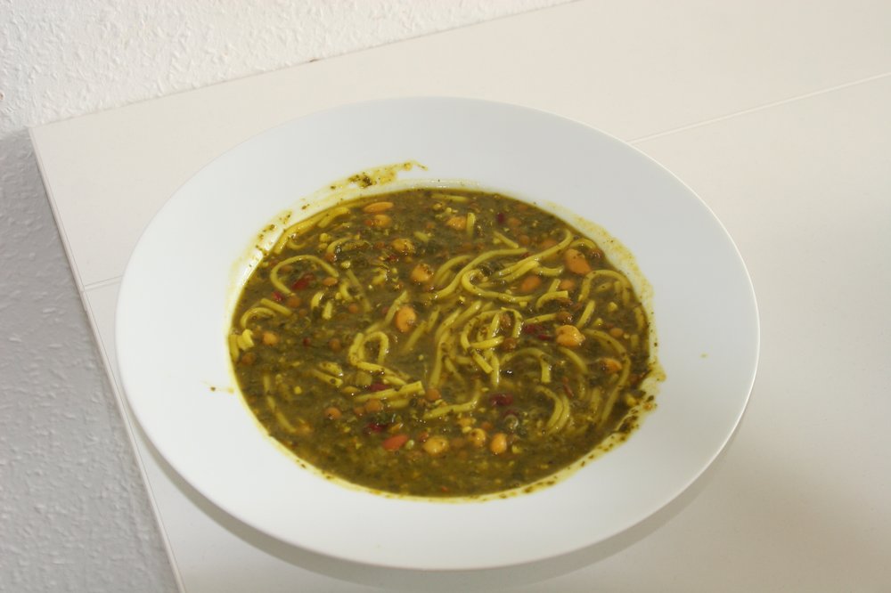 Eine herzhafte, würzige Suppe aus dem Iran mit dünnen Nudeln, Linsen, Kichererbsen und frischen Kräutern. Traditionell mit gerösteten Zwiebeln und Knoblauch sowie saurem Kashk verfeinert – perfekt für kalte Tage oder als wärmendes Soulfood.