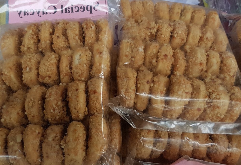 Knusprige, mehrschichtige Kekse von den Philippinen, die in süßen Sirup getaucht und in gerösteten, gemahlenen Erdnüssen gewälzt werden. Ein beliebter süßer Snack aus der Region Visayas.