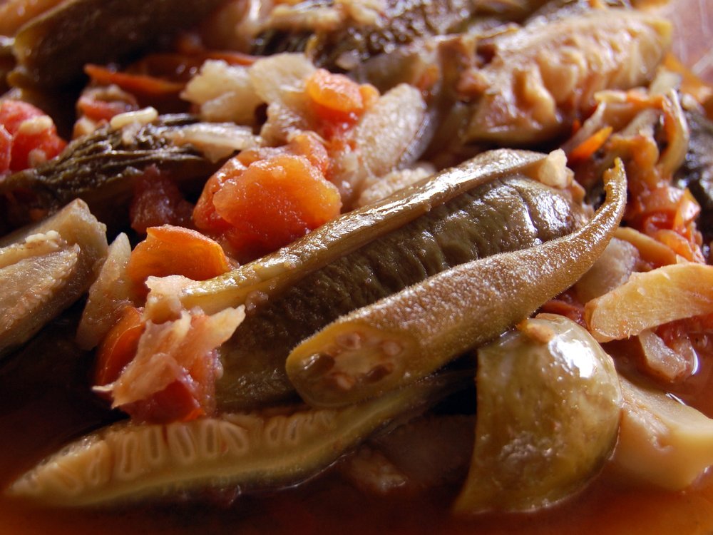 Ein traditioneller philippinischer Gemüseeintopf aus der Ilocos-Region, der seinen unverwechselbaren Geschmack durch fermentierte Fischpaste (Bagoong Monamon) erhält. Dieses Gericht kombiniert verschiedene lokale Gemüsesorten mit gegrilltem oder gebratenem Fisch zu einer herzhaften Mahlzeit.