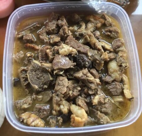 500 g🥄Ziegenfleischoder Rindfleisch; in 3 cm Würfel geschnitten