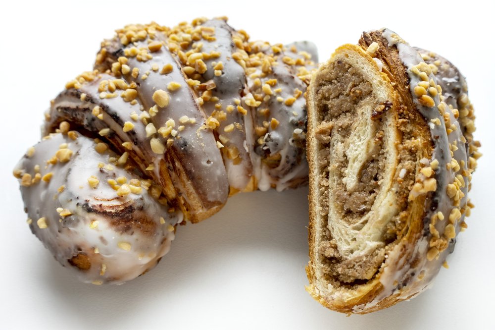 Ein traditionelles polnisches Hefegebäck aus Posen mit einer reichhaltigen Füllung aus Weißmohn, Marzipan und Nüssen. Diese geschützte Spezialität wird traditionell zum St. Martins-Tag genossen.