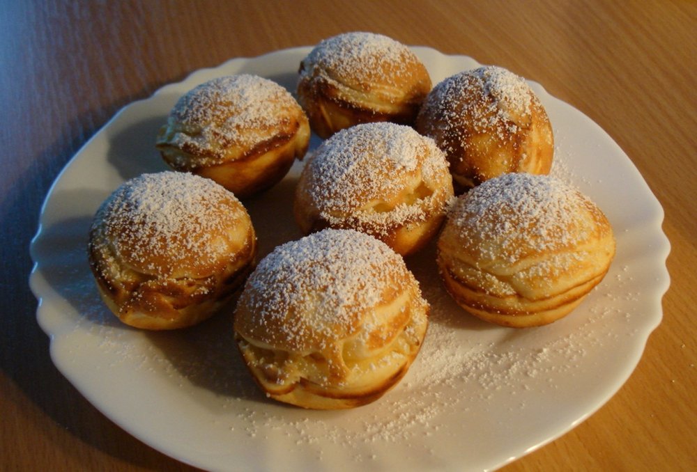 Traditionelle böhmische Hefeteig-Pfannkuchen, die in einer speziellen Pfanne mit Vertiefungen goldbraun ausgebacken werden. Dieser Klassiker der österreichischen Mehlspeisenküche wird typischerweise mit Powidl oder Marmelade serviert.