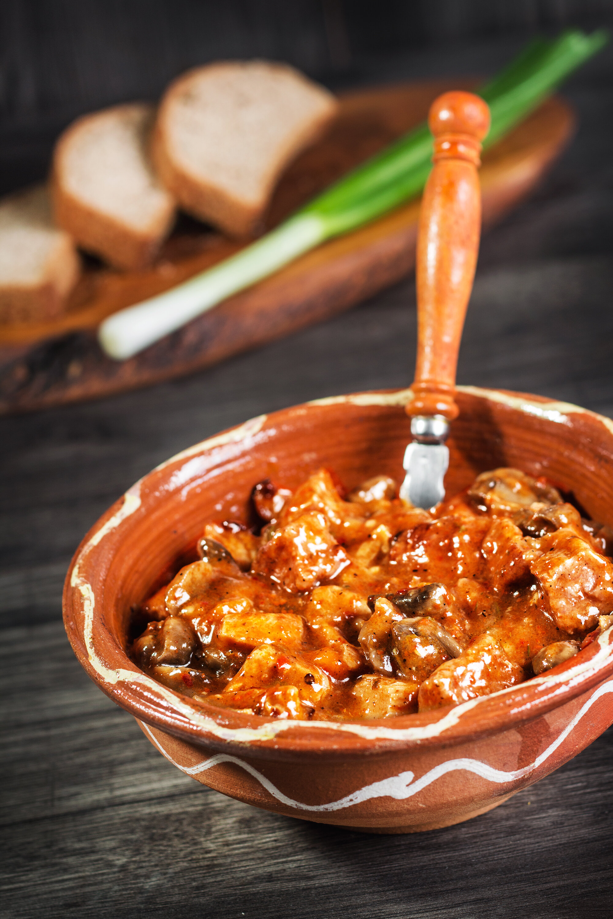 Ein traditioneller mazedonischer und bulgarischer Fleisch- und Pilzeintopf, der typischerweise in einem rustikalen Tontopf zubereitet wird. Ein herzhaftes, wärmendes Gericht, das die deftigen Aromen des Balkans perfekt vereint.