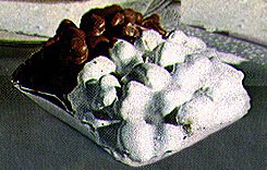 Ein traditionelles sizilianisches Schichtdessert aus Messina, das besonders zu Weihnachten serviert wird. Frittierte Teigbällchen werden zu einem Hügel geschichtet und je zur Hälfte mit dunkler Schokoladen- und weißer Zitronenglasur überzogen.