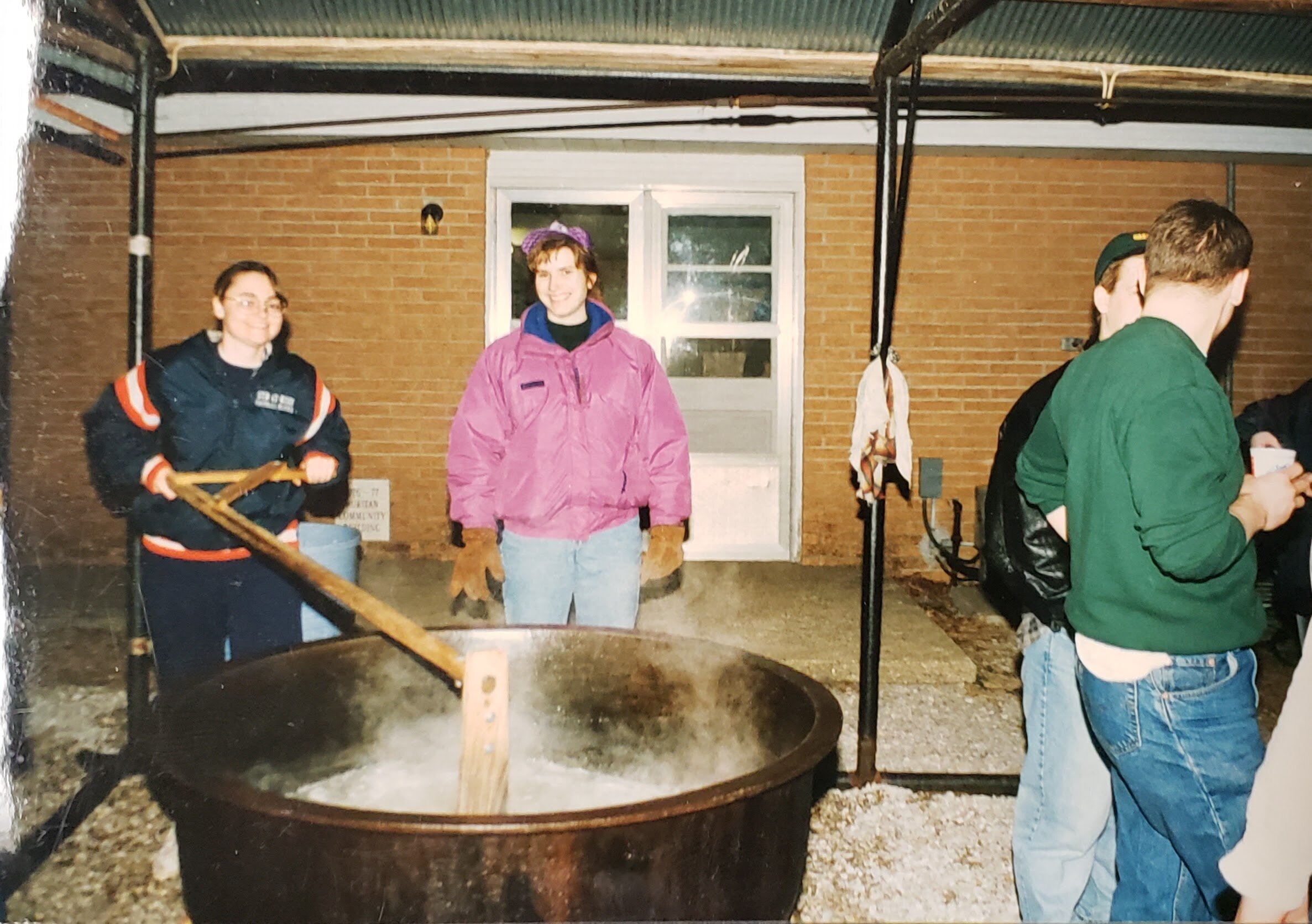 Lasse den Eintopf für mindestens vier Stunden sanft köcheln. Rühre dabei fast ununterbrochen mit einem großen Holzlöffel oder Paddel um, um zu verhindern, dass die stärkehaltigen Zutaten am Kesselboden ansetzen und verbrennen.