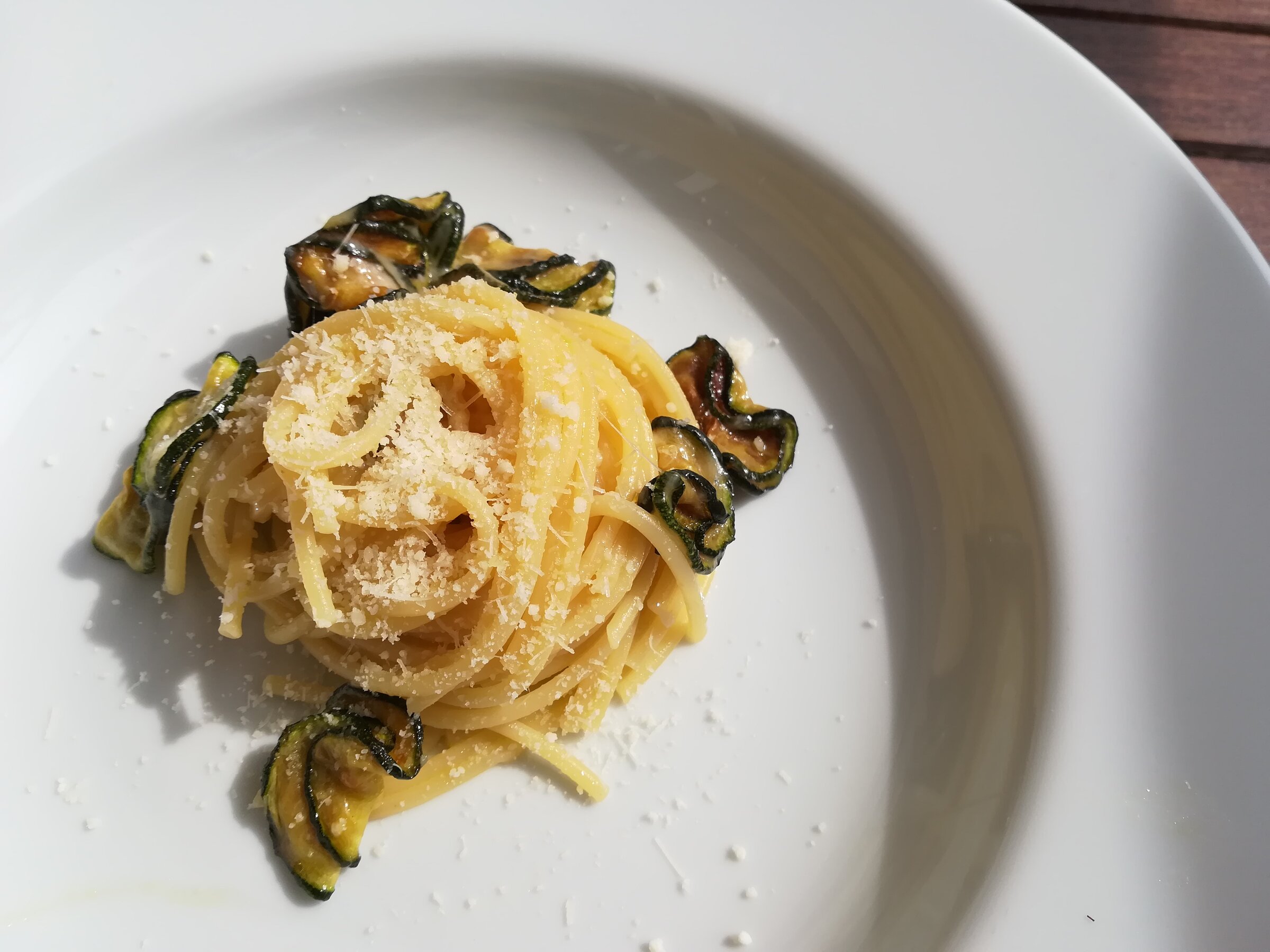 Ein cremiger süditalienischer Pasta-Klassiker von der Amalfiküste. Zarte, frittierte Zucchini verschmelzen mit herzhaftem Provolone del Monaco und frischem Basilikum zu einer unwiderstehlichen Emulsion – ganz ohne Sahne.