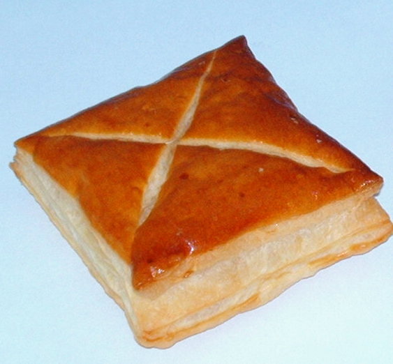 Ein luftiges, blättriges Gebäck aus dem Schweizer Kurort Baden. Die quadratischen Blätterteig-Taschen sind mit einer süßen Mischung aus gerösteten Haselnüssen und fruchtiger Aprikosenmarmelade gefüllt. Das charakteristische eingeritzte Kreuz auf der Oberseite sorgt für die perfekte Knusprigkeit.