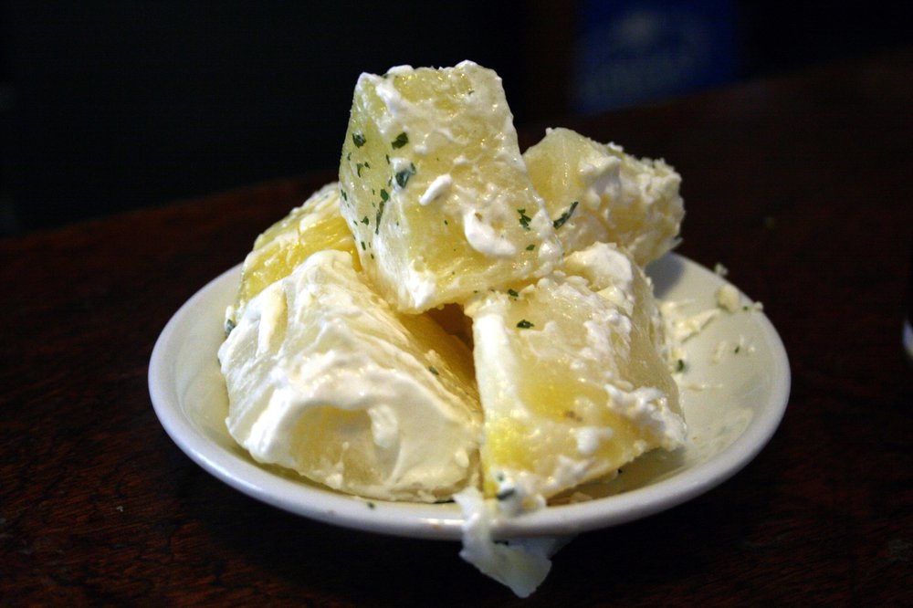 Eine klassische griechische Knoblauchcreme auf Kartoffelbasis. Dieser würzige Dip ist eine beliebte Beilage zu gebratenem Fisch oder Gemüse.