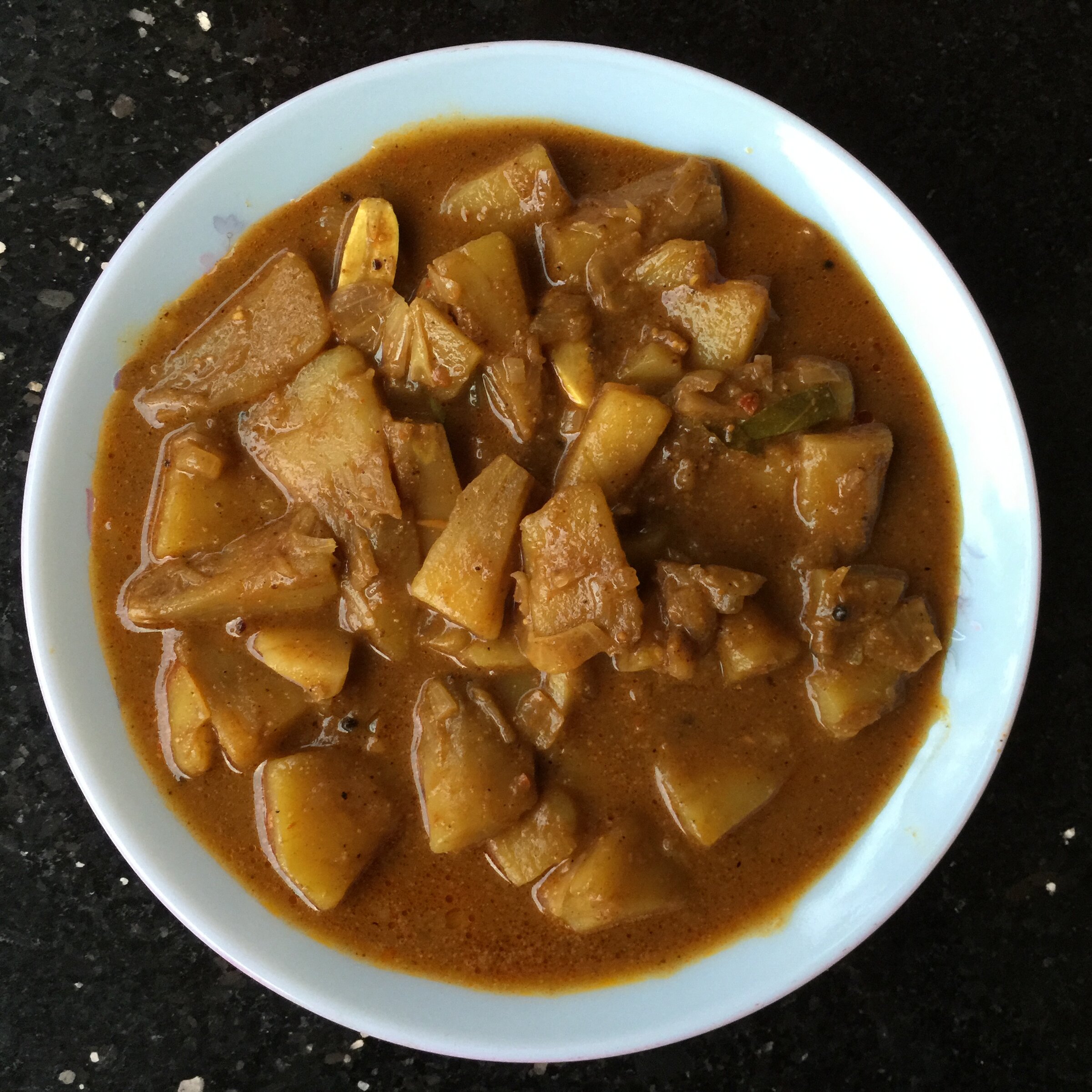 Theeyal ist ein authentisches Gericht aus dem südindischen Bundesstaat Kerala und in einigen Regionen ein fester Bestandteil traditioneller Festmähler (Sadya). Der Name „Theeyal“ bedeutet „verbranntes Gericht“ und ist eine direkte Anspielung auf die unverkennbare dunkelbraune Farbe, die durch das intensive Rösten der Kokosnuss entsteht.