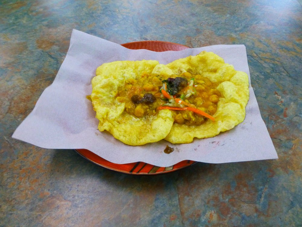 Ein klassisches nordindisches Gericht, das würziges Kichererbsen-Curry (Chole) mit luftig frittiertem Brot (Bhatura) kombiniert. Diese herzhafte Speise ist ein beliebtes Street Food und wird traditionell oft als deftiges Frühstück serviert.