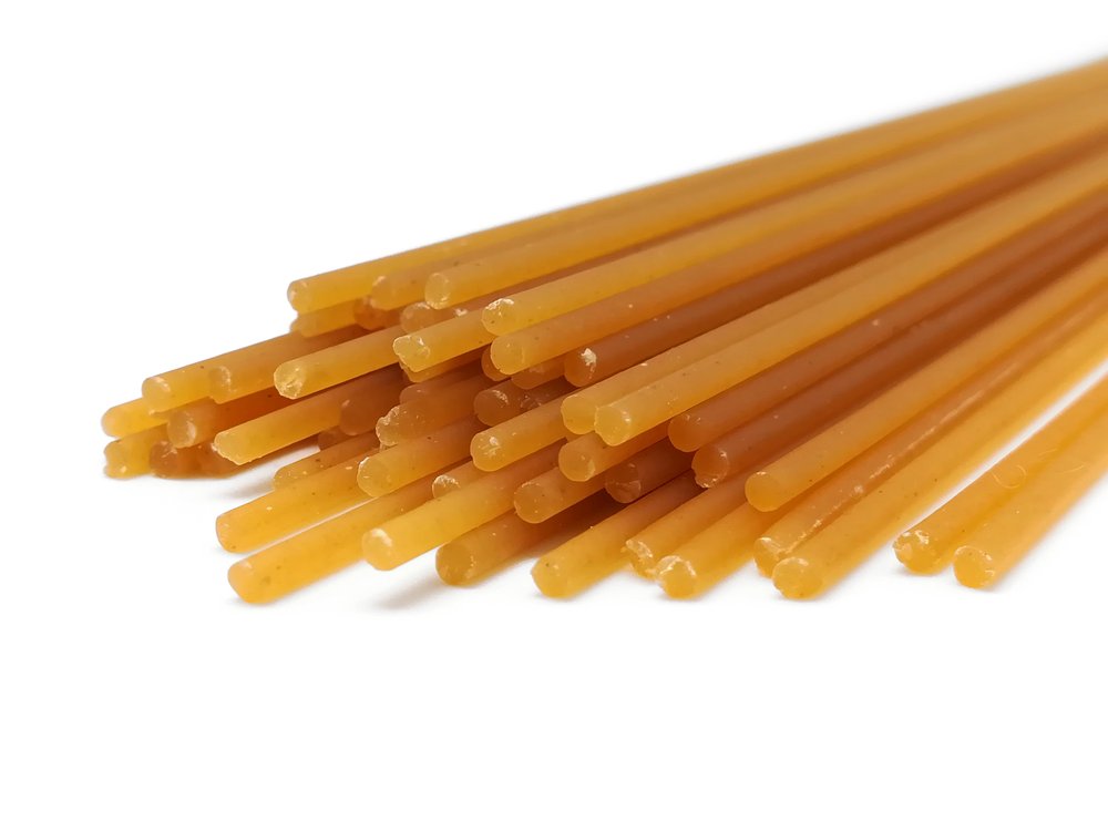Diese traditionelle italienische Pasta aus Venetien zeichnet sich durch ihre kräftige, extrudierte Struktur aus. Mit Enteneiern und Vollkornmehl hergestellt, passt sie perfekt zu rustikalen Ragouts oder Butter-Salbei-Soßen.