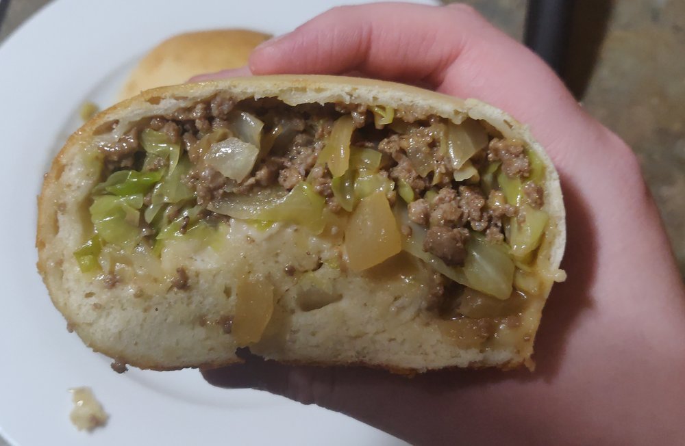 Herzhafte Hefeteigtaschen gefüllt mit einer saftigen Mischung aus Rinderhackfleisch, Weißkohl und Zwiebeln. Ein beliebtes Gericht der Wolgadeutschen in den USA.