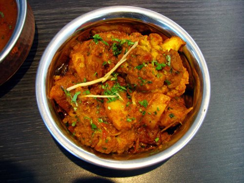 Ein mildes, aromatisches Curry aus der Mughlai-Küche, bei dem zartes Hähnchenfleisch in einer reichhaltigen Sauce aus Joghurt, Nüssen und Gewürzen geschmort wird. Die sämige Konsistenz entsteht durch eine feine Paste aus gebratenen Zwiebeln und Cashewkernen.