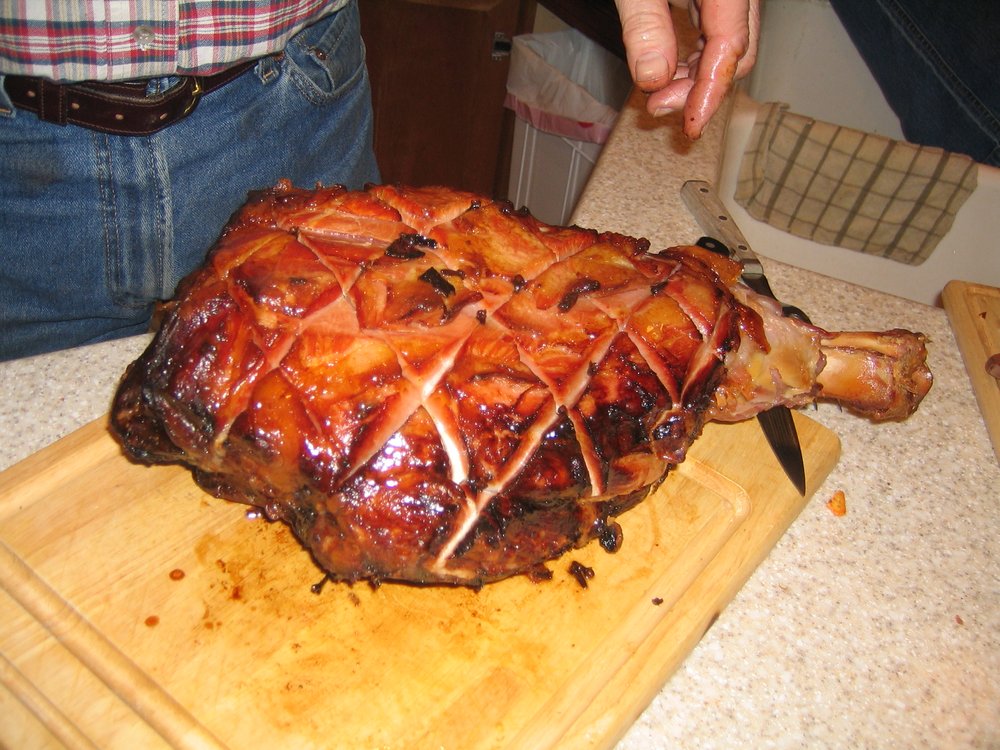 Ein klassischer Festtagsbraten aus den USA. Der salzige, gereifte Schinken wird gewässert, gekocht und mit einer süßen Kruste glasiert serviert.