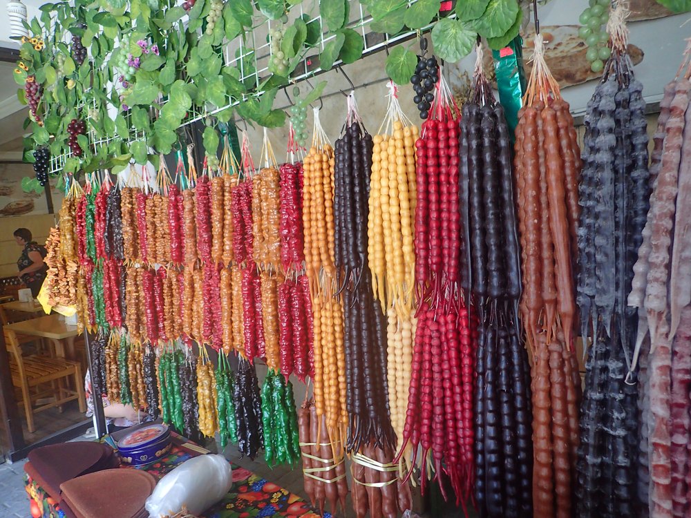 Eine süße, halb-gelatinöse türkische Spezialität aus karamellisierten Karotten, knackigen Nüssen und Kokosraspeln. Dieses traditionelle Konfekt erinnert an Lokum und ist ein beliebter Snack zu besonderen Anlässen.