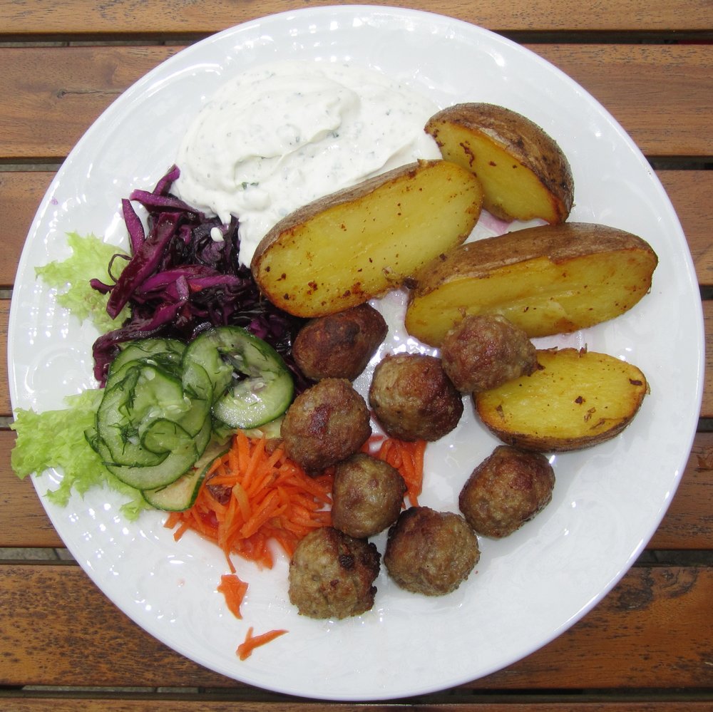 Ein rustikales Traditionsgericht aus dem Harz, das deftige Ofenkartoffeln mit würzigem Hackfleisch kombiniert. Die mit Kümmel gebackenen Kartoffeln werden klassisch mit frisch angemachtem Mett oder gebratenen Frikadellen serviert.