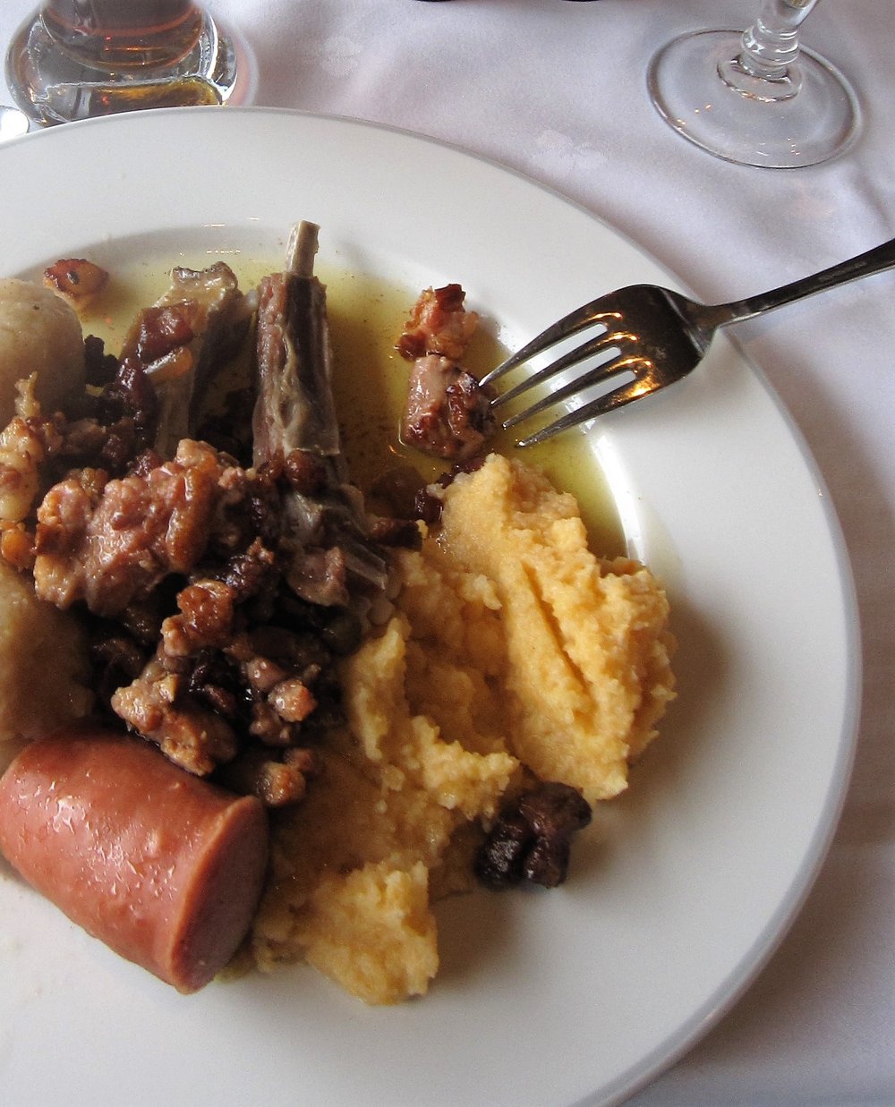 Den Speck herausnehmen, warm halten und später in Scheiben oder Würfel geschnitten dazu servieren.