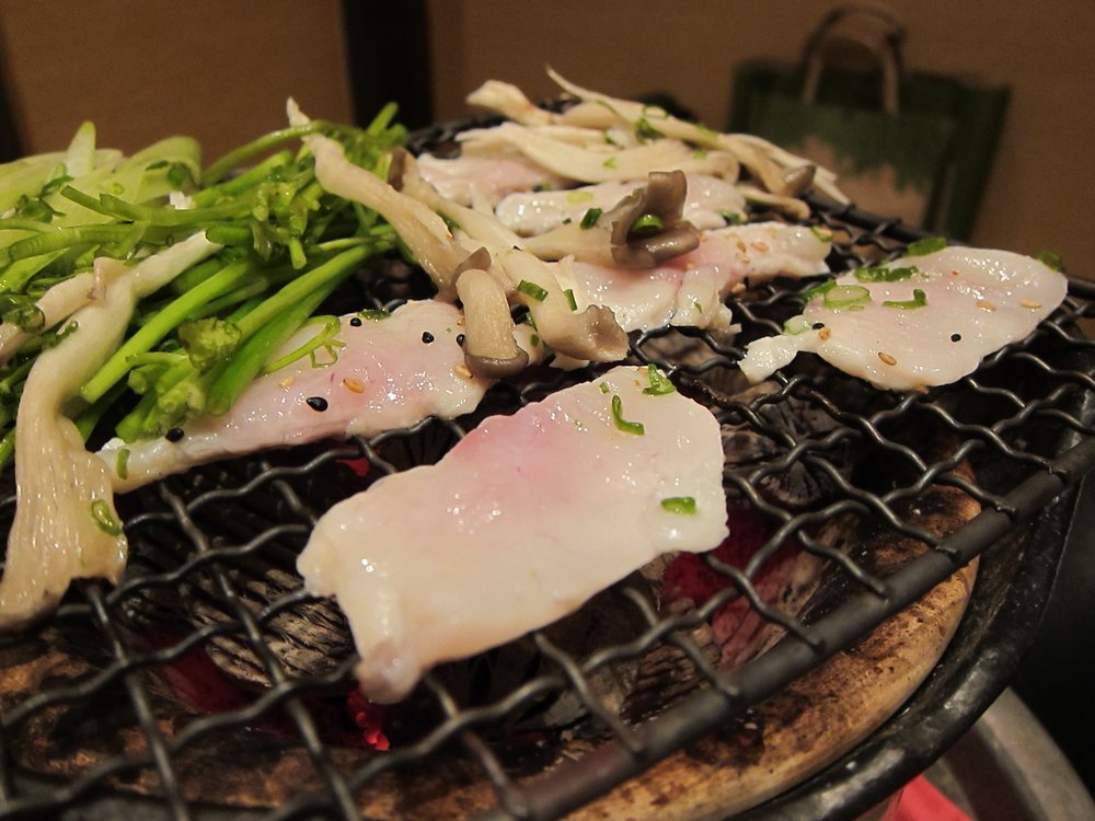 Ein traditionelles japanisches Brühfondue, bei dem hauchdünnes Rindfleisch und frisches Gemüse kurz in einer heißen Kombu-Brühe gegart werden. Der Name ahmt das Geräusch nach, das beim Schwenken der Zutaten im Sud entsteht.