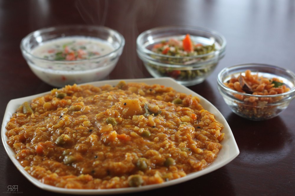 Ein würziges, heißes Reisgericht aus Karnataka mit Linsen, Gemüse und einer aromatischen Gewürzmischung. Traditionell im Mysore-Palast zubereitet, wird es heute oft mit Papad oder Chutney serviert.