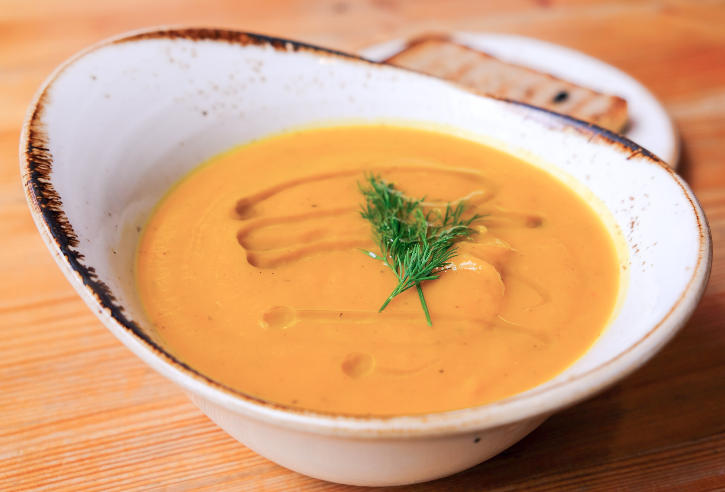Nimm den Topf vom Herd. Püriere die Suppe mit einem Pürierstab oder in einem Standmixer, bis eine samtige, feine Konsistenz erreicht ist.