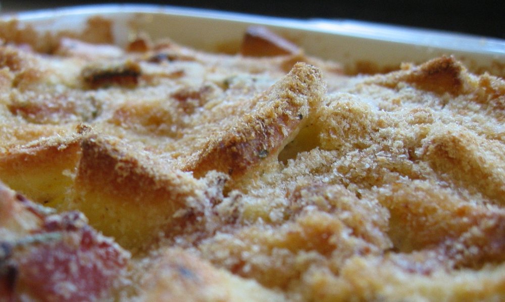 Ein deftiger Kartoffelauflauf aus der westfälischen Küche, der traditionell zur Resteverwertung von Schinken und Speck dient. Die Zutaten werden geschichtet und mit einer herzhaften Eier-Sahne-Mischung im Ofen überbacken.