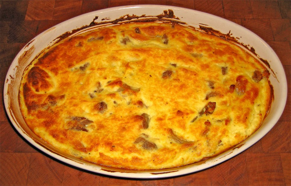 Im vorgeheizten Ofen ca. 40-45 Minuten backen, bis die Oberfläche goldbraun ist und die Soße gestockt hat.