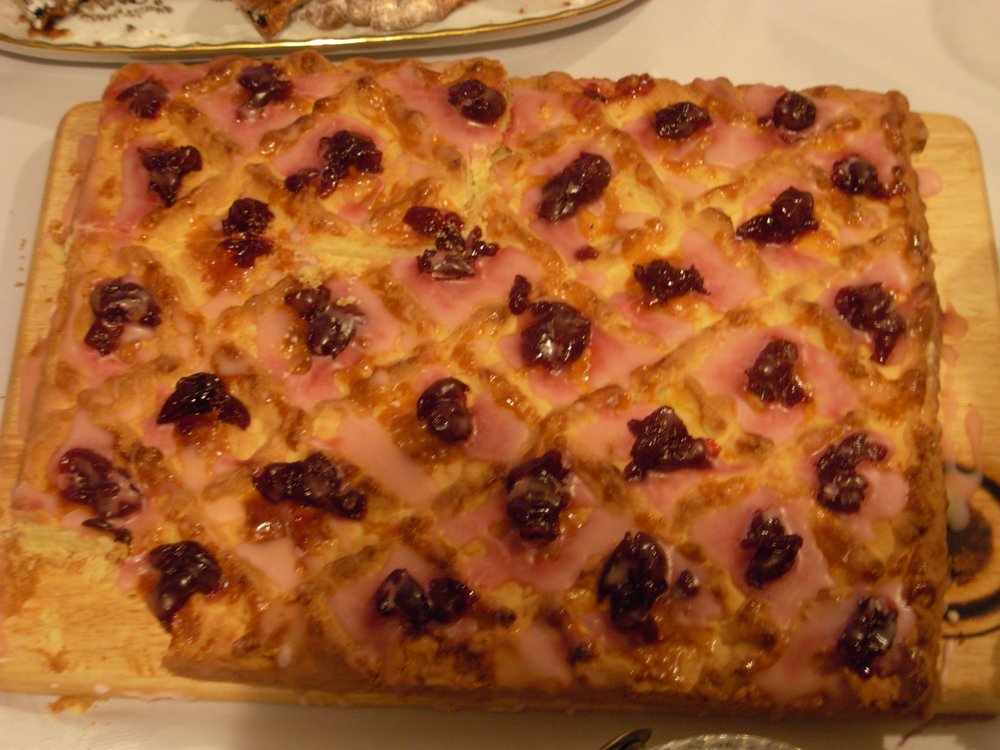 Ein traditioneller polnischer Blechkuchen aus mürbem Teig, der reich mit Marmelade gefüllt und kunstvoll dekoriert wird. Er ist das Herzstück der polnischen Ostertafel.